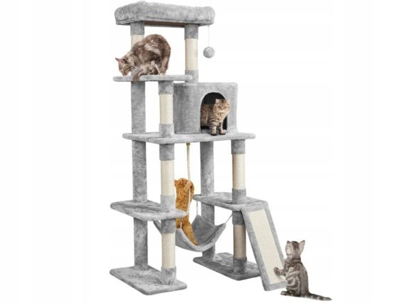 Yaheetech drapak 159cm stabilny drapak dla kota drapak z jaskiniami i platformami dla kotów domek do zabawy dla kotów jasnoszary