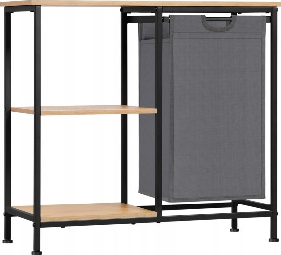 REGAŁ ŁAZIENKOWY z koszem na pranie EUGAD 70 x 65 x 30 cm czarny jasny dąb